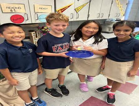 As an introduction to prepositions, students in Mrs. Pears’ sixth grade class at Montgomery Catholic Preparatory School’s St. Bede Campus got creative with a fun paper airplane activity during the first week of school. Each student crafted a paper airplane that they then sailed down the hallway 10 times. Following each flight, students described how and where the plane landed using a different prepositional phrase. Some examples of the phrases were “into Jayden’s back”, “above the locker”, and “it did a loopy loop over their heads.” The lesson really took flight and will surely be remembered for the next sixth grade writing assessment!
