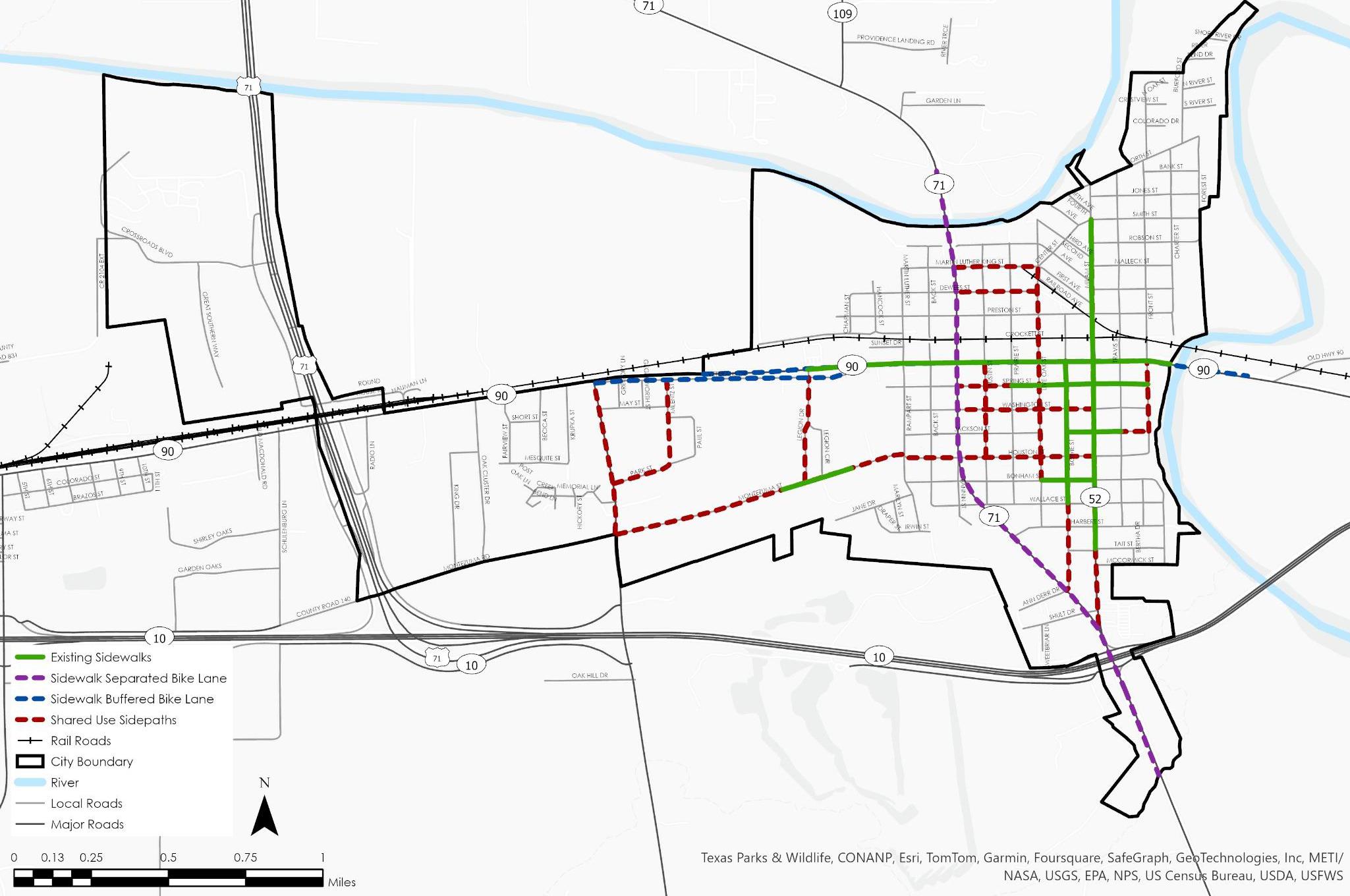 Current Network: 19.59 miles (8.77 miles pedestrian, 10.82 miles bicycle facilities).