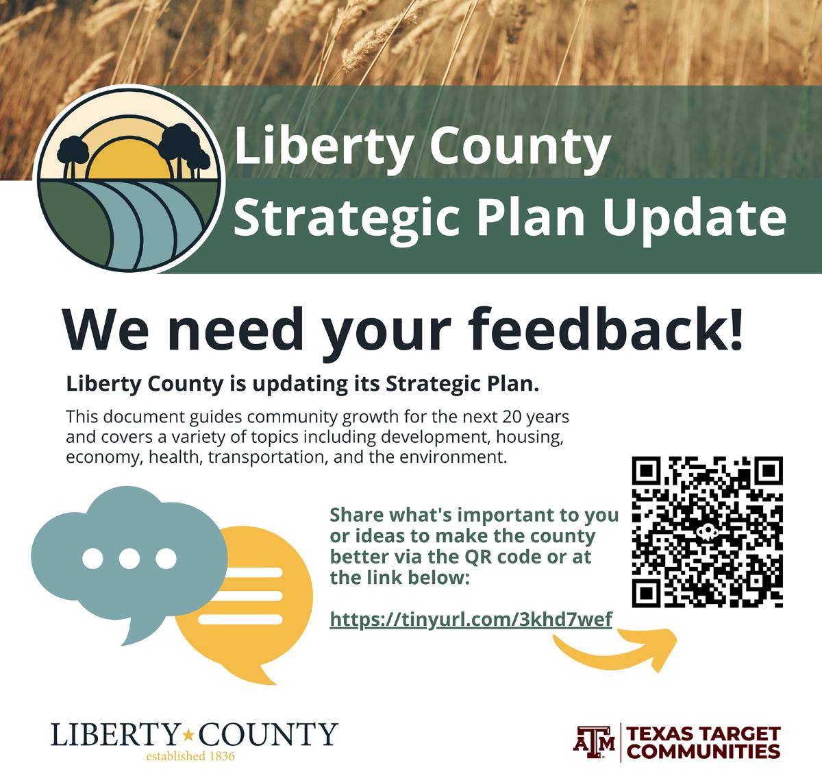 • Collaborated with Texas Target Communities and Liberty County to update the 2016-2036 Liberty County Strategic Plan, focusing on sustainable development and community resilience.