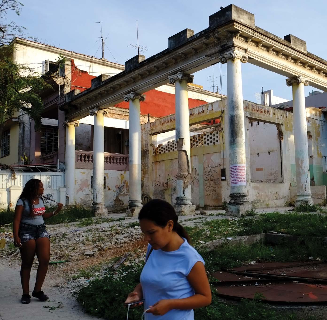 Una puerta que resguarda la ruina de un vecino. La fachada todavía en pie del cine Neptuno. El estanquillo de periódicos obsoleto, donde trabajó mi padre hasta que perdió la cordura. Un muro limpio, detrás de un busto de Martí.