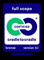 • 100% biodegradable and Cradle to Cradle certified material, woven from dyed yarn, reducing waste water consumption by appr. 2/3 compared to traditional piece dyeing