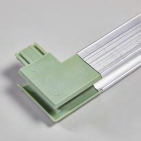 • I stedet for at bruge svejseteknologi og smide de tomme plastikcones ud tilbyder vi nu en højere grad af fleksibilitet. Hjørneprofilet kan skilles ad og samles med rammeskinner efter kundens behov.
