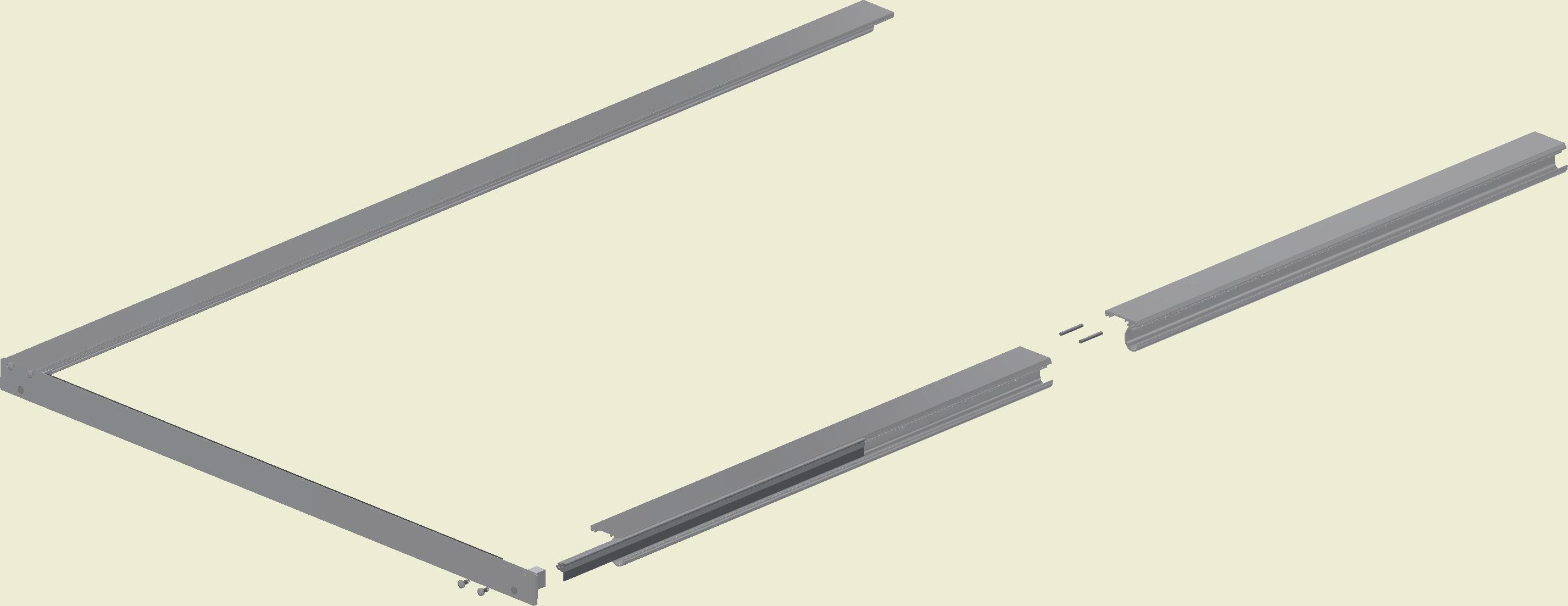 Ingen montage stifter ved knæk. Sidste skinne før og efter knæk monteres med min. 2 skruer..