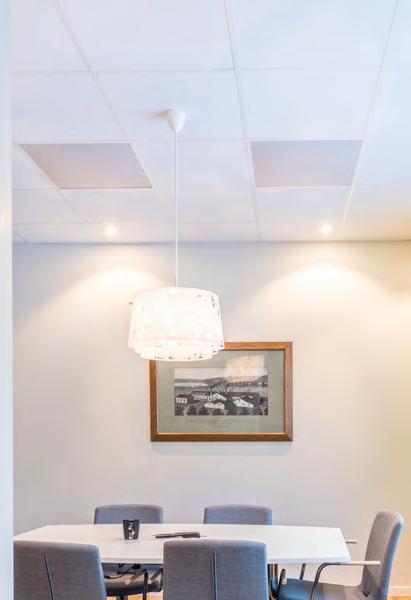 The panel ”Top” is made of textile material and is therefore flexible. That makes a panel solution ideal for rooms with limited headroom above the ceiling and for rooms with low ceilings. In addition, the panels themselves are fully integrated into the ceiling.