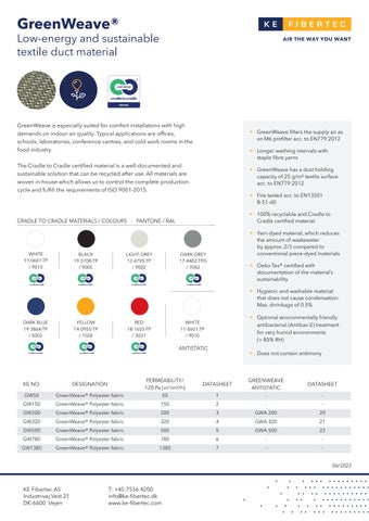 • GreenWeave has a dust holding capacity of 25 g/m² textile surface acc. to EN779:2012
