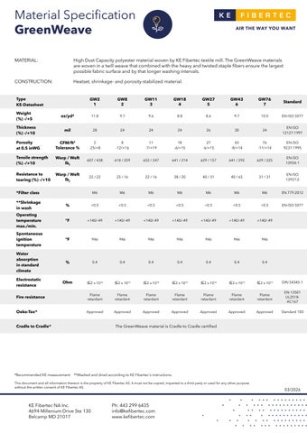 *Recommended KE measurement **Washed and dried according to KE Fibertec's instructions. This document and all information thereon is the property of KE Fibertec AS. It must not be copied, imparted to a third party or used for any other purpose without the written consent of KE Fibertec AS. KE Fibertec NA Inc. 4694 Millenium Drive Ste 130 Belcamp MD 21017