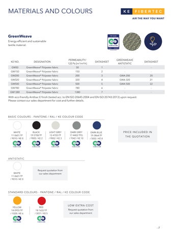 STANDARD COLOURS - PANTONE / RAL / KE COLOUR CODE