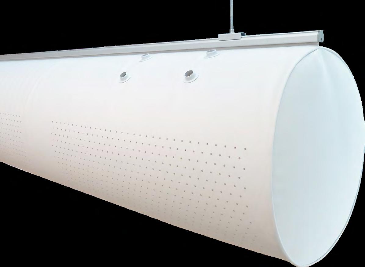 KE Fibertecs fleksible og lette tekstilkanaler er dimensioneret, så de passer til hvert enkelt rum. Vores ophængsskinner leveres afkortet på mål, hvilket gør montagen enkel og hurtig.
