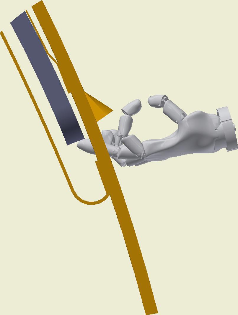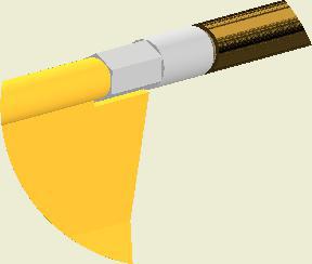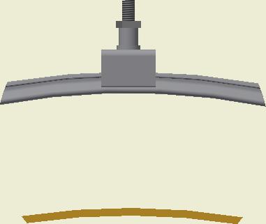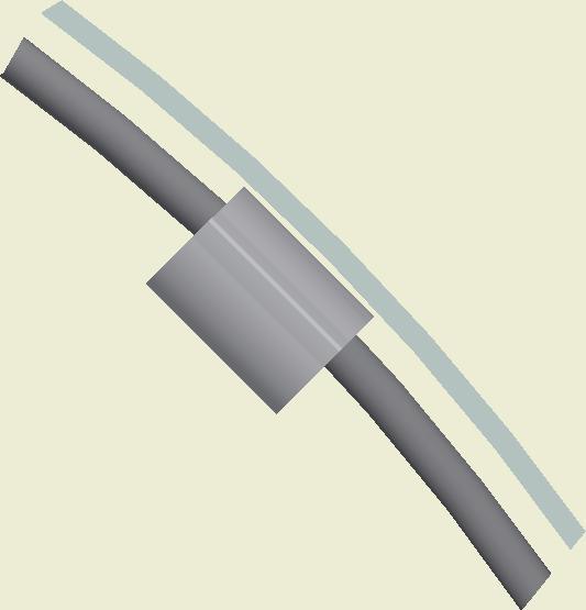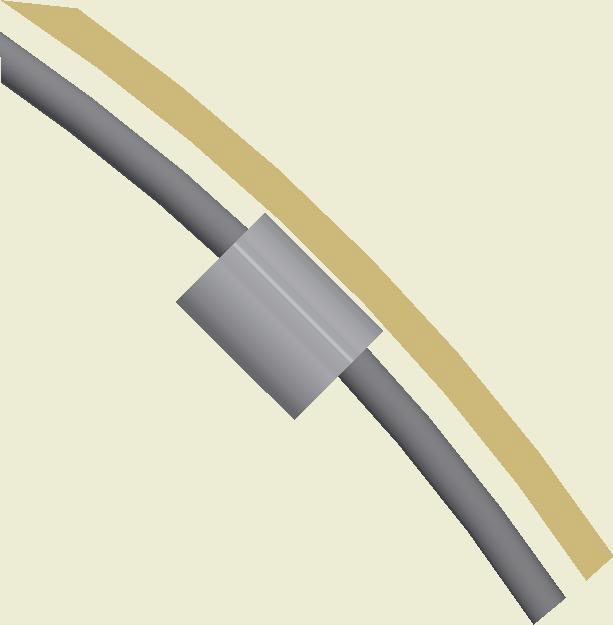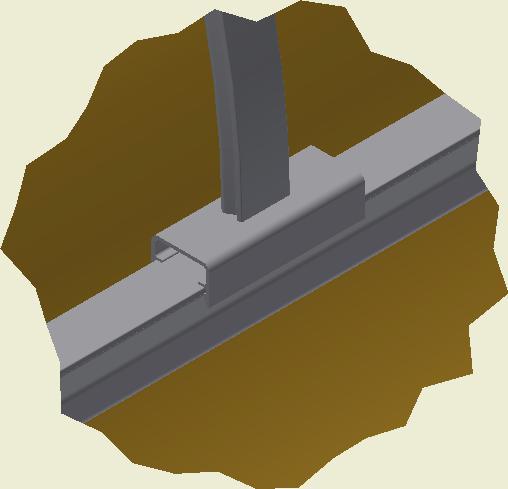At the end of the duct, lower the SafeStretch Bracket (without the set screw) over the track and into the duct through the 2 slots in the fabric duct section at 12 o'clock, until it "snaps" onto the track. The bracket must be at an angle so one groove sits in place on the rail, and then it can be clicked on. Make sure it is placed so that it is in front of the horizontal strut. Insert the screw, but do not tighten it fully yet, as the bracket still has to be moveable/adjustable.