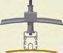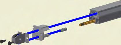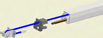 At the end of the duct, lower the SafeStretch Bracket (without the grub screw) over the track and into the duct through the 2 slots in the fabric duct section at 12 o’clock, until it ”snaps” onto the track. The bracket must be at an angle so one groove sits in place on the rail, and then it can be clicked on. Make sure it is placed so that it is in front of the horizontal strut. Insert the screw, but do not tighten it fully yet, as the bracket still has to be moveable/adjustable (for a more detailed view, see OS-0022-GB-02).