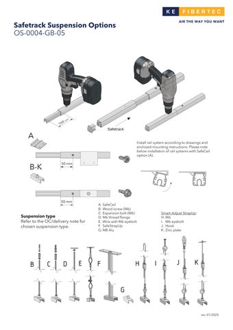Install rail system according to drawings and enclosed mounting instructions. Please note below installation of rail systems with SafeCeil option (A).