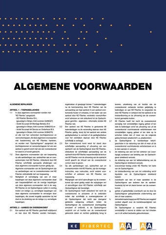 Algemene voorwaarden KE Fibertec, AA montage en AA Service en Onderhoud 2012 gedeponeerd bij de KvK te Rotterdam onder nummer 24299327.