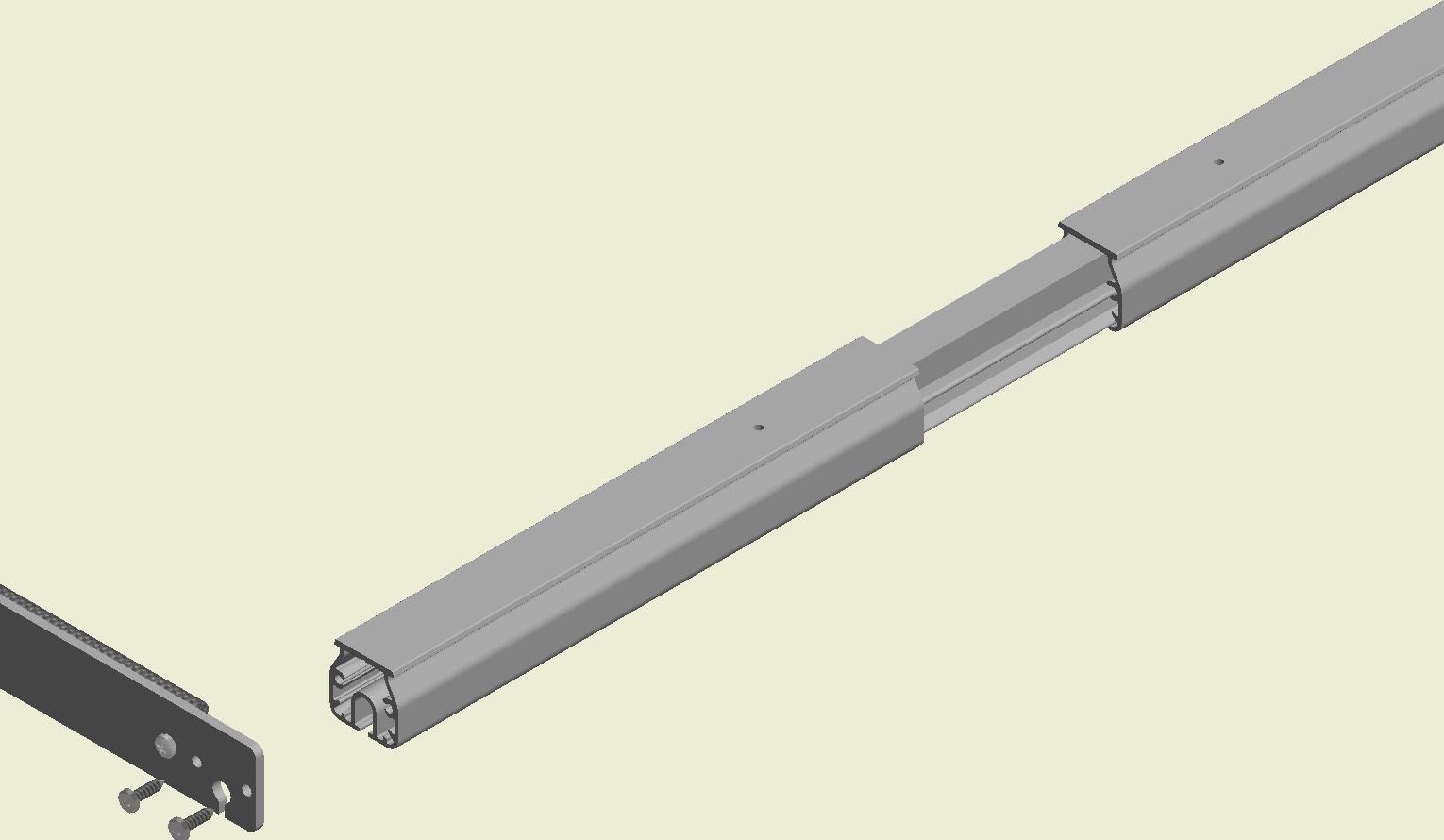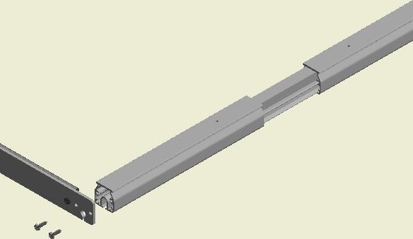 Feed cord through hole. Pull/ push the duct along the rails until reaching the end section. Tighten the set screw with a hex key (not included).