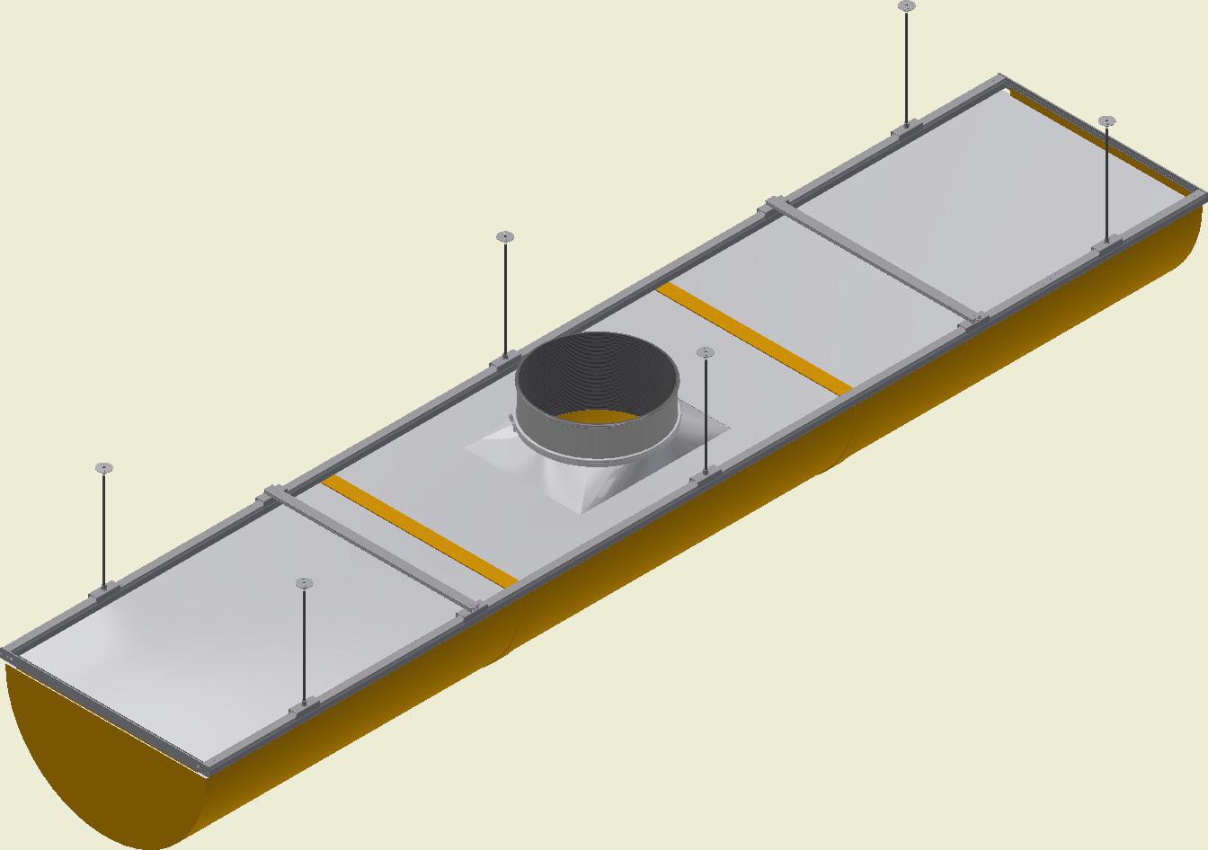 The T-SRD is fastened to the inside of the fabric duct by means of velcro
