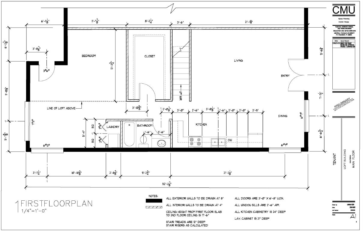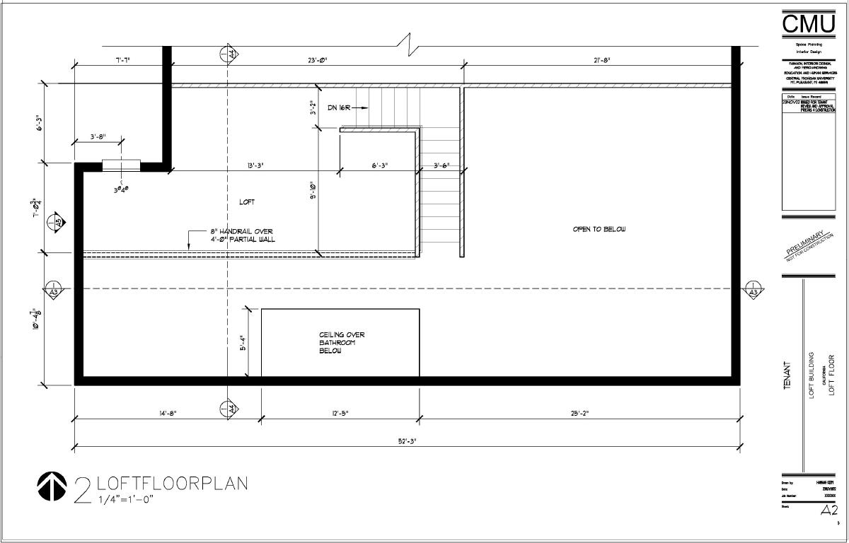 The loft floor plans were given to us complete so we were tasked with recreating them using our learned knowledge of AutoCAD software. There was no individual design concept needed for this project.