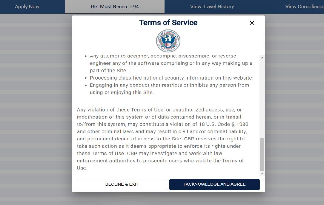 注)I-94が最新の情報にアップデートされるまでに 1週間程時間がかかる場合があります。