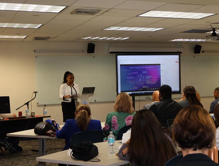 Dr. Brenda Marles, a student in the Ph.D. in Industrial and Organizational Psychology program, was the first to present her research, with faculty members and fellow students attending the session.
