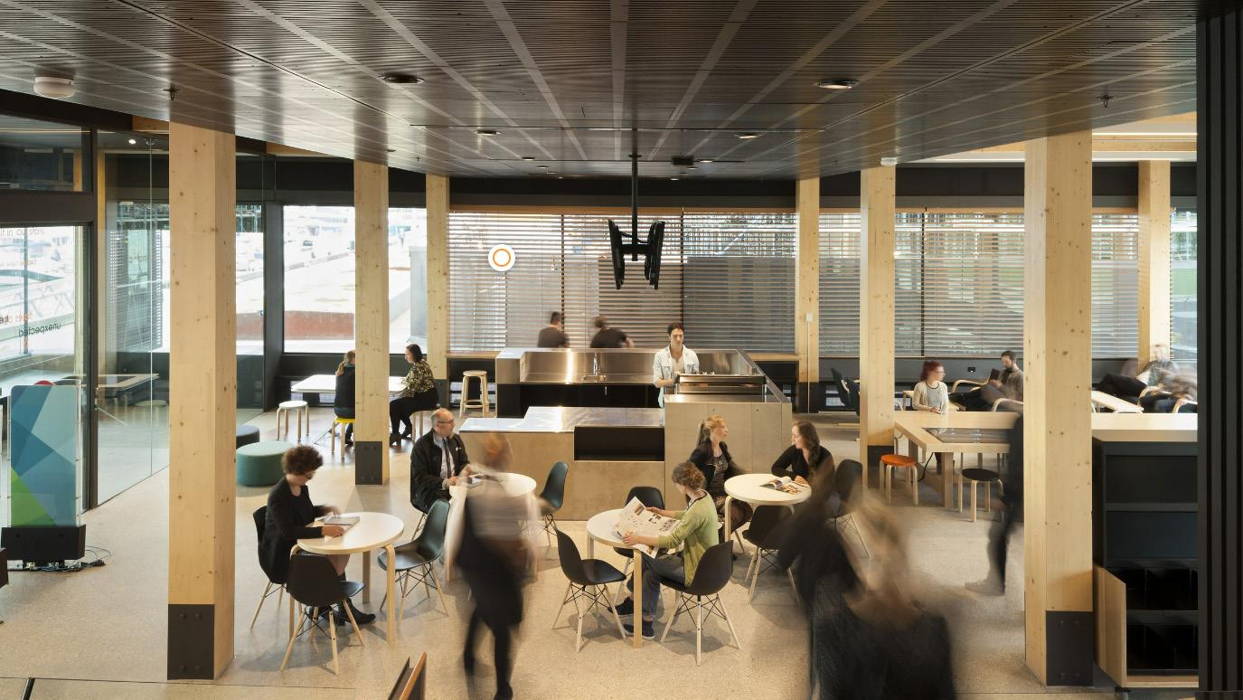 • Bangunan ini mencakup ventilasi pasif, ruang dalam / luar ruangan di lantai tiga dengan fasad yang dapat dioperasikan dan atap panel surya 85kw di atap, pemanenan air, dan pencahayaan alami.