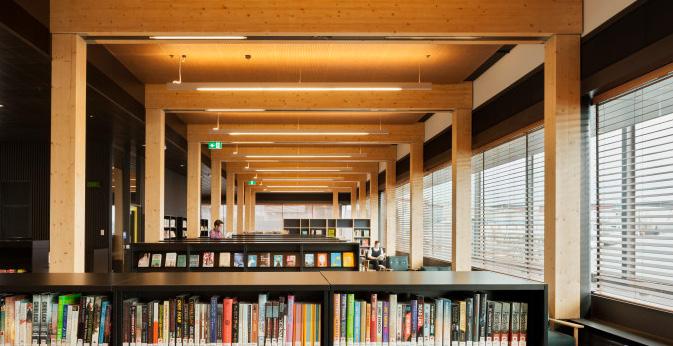 Menyediakan beragam ruang dari area membaca yang akrab hingga ruang berkumpul yang aktif dengan perpaduan jendela yang besar dari berbagai arah dan sisi untuk menghadirkan cahaya alami.
