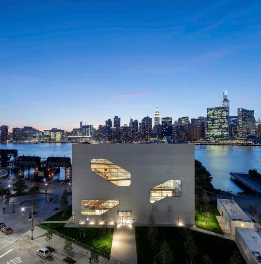 Perpustakaan Umum Queens seluas 22.000 kaki persegi di Hunters Point berdiri sebagai bangunan publik dan taman umum, menghadirkan ruang khusus komunitas ke tepi laut Long Island City.
