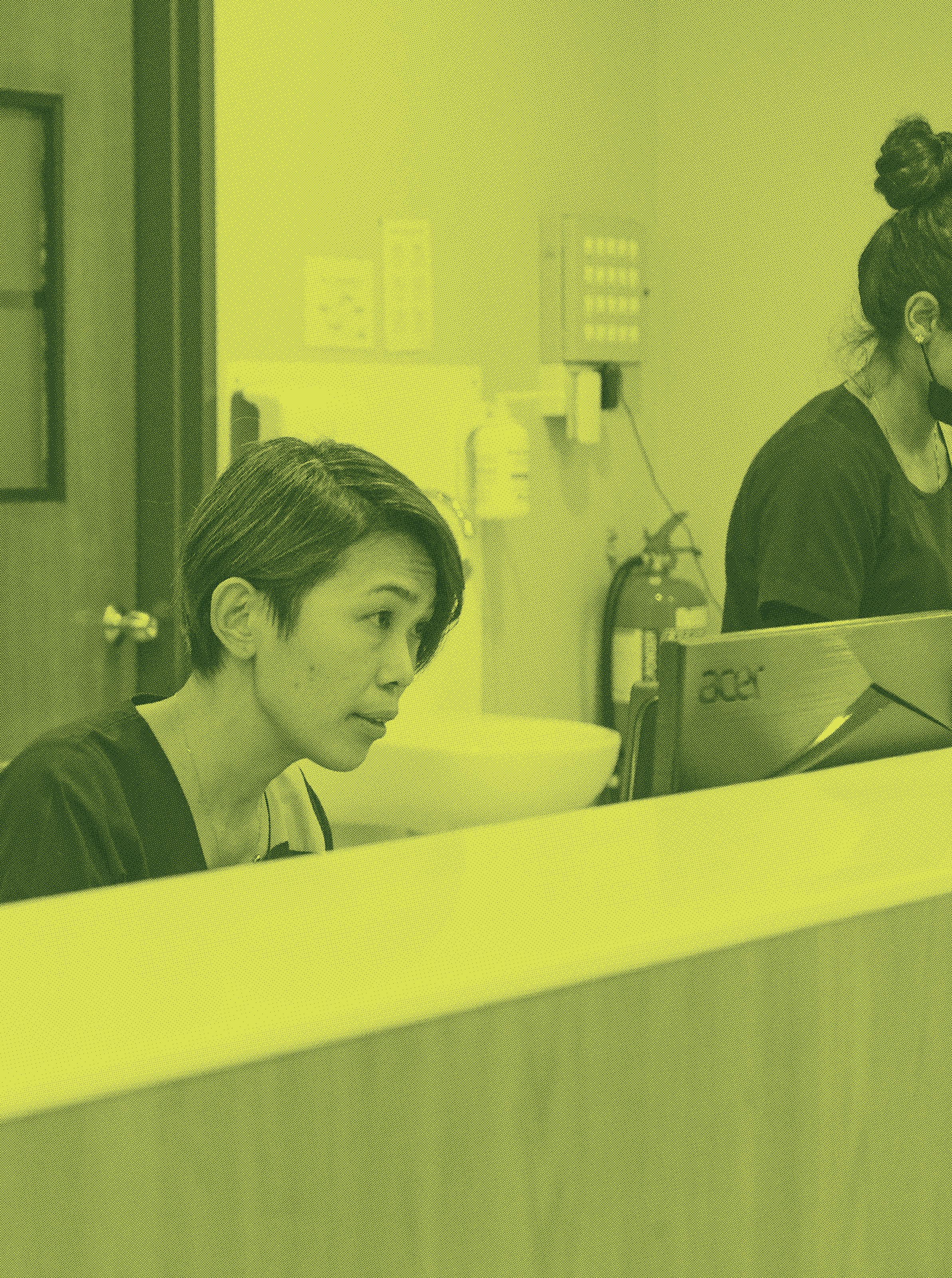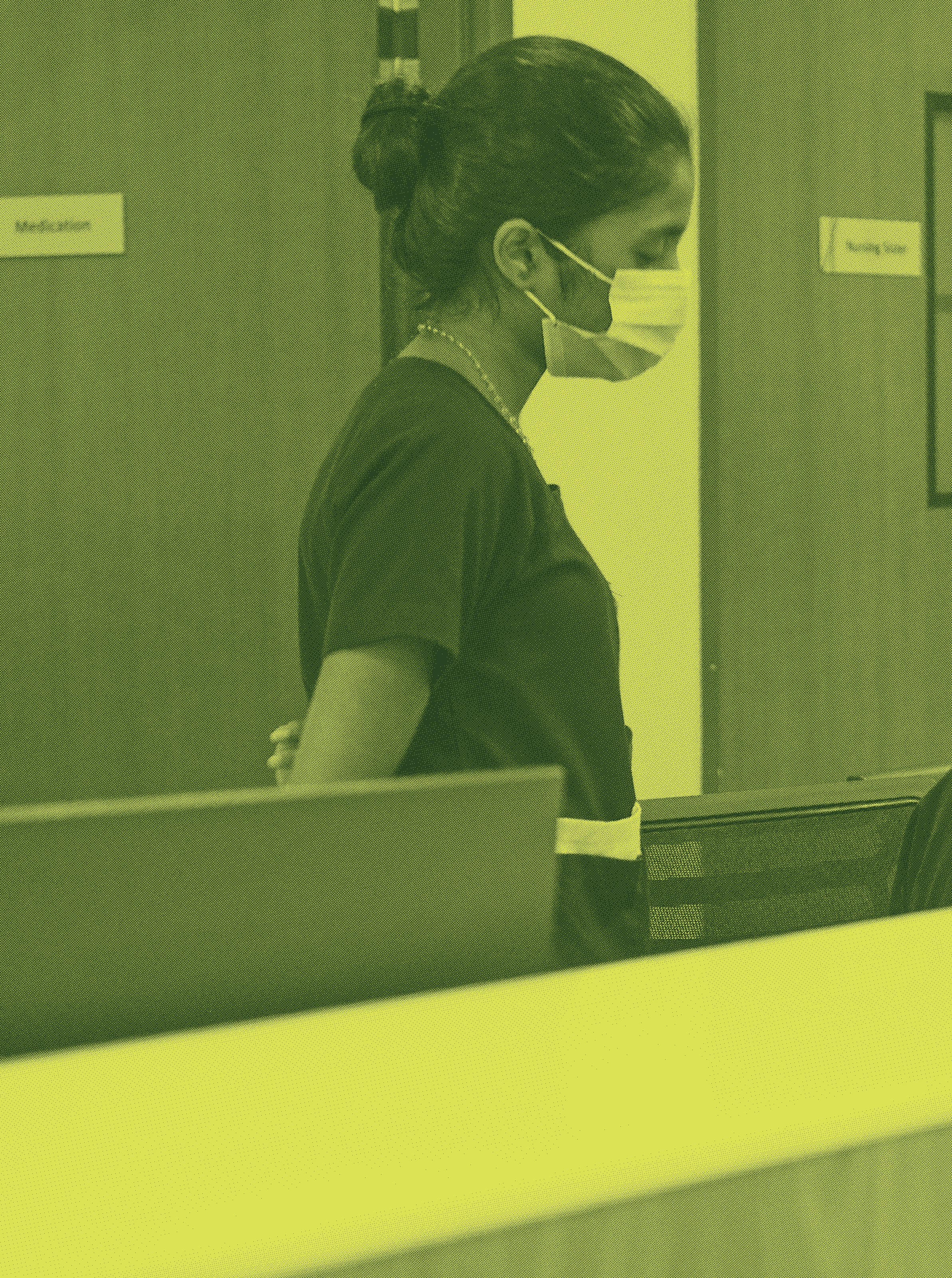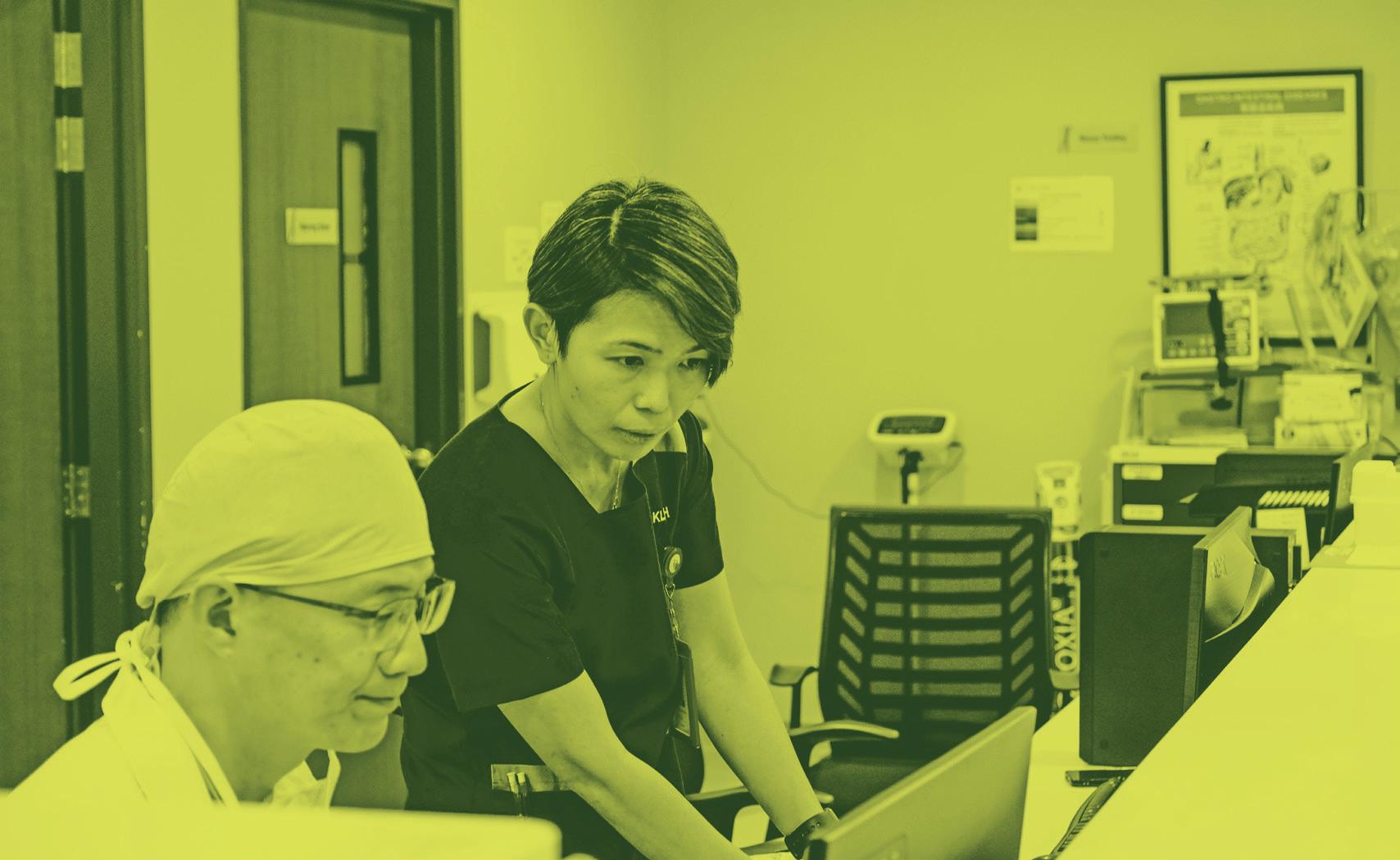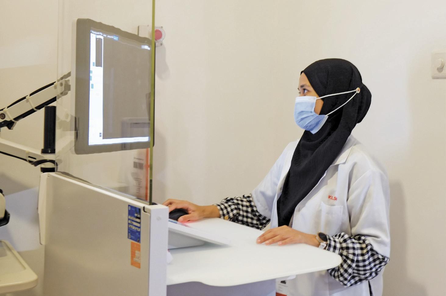 Sister Teoh Ming Hui assists doctors in monitoring patients’ conditions.
