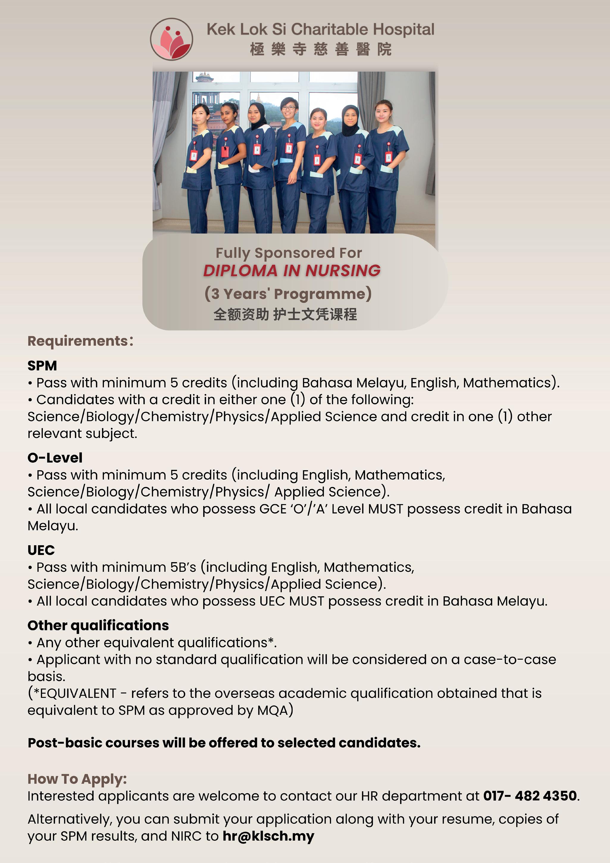 As the population ages, the nursing profession continues to see high demand. It is a “secure career” that offers excellent opportunities for professional growth. Sister Teoh would like to encourage more youths to consider joining the nursing profession and to continually enhance their skills as they advance in their careers. She emphasised that nursing is not limited to hospital wards; nurses can leverage their abilities and interests in various areas and seek out a wide range of opportunities in areas such as management, education, clinical research, or patient education.