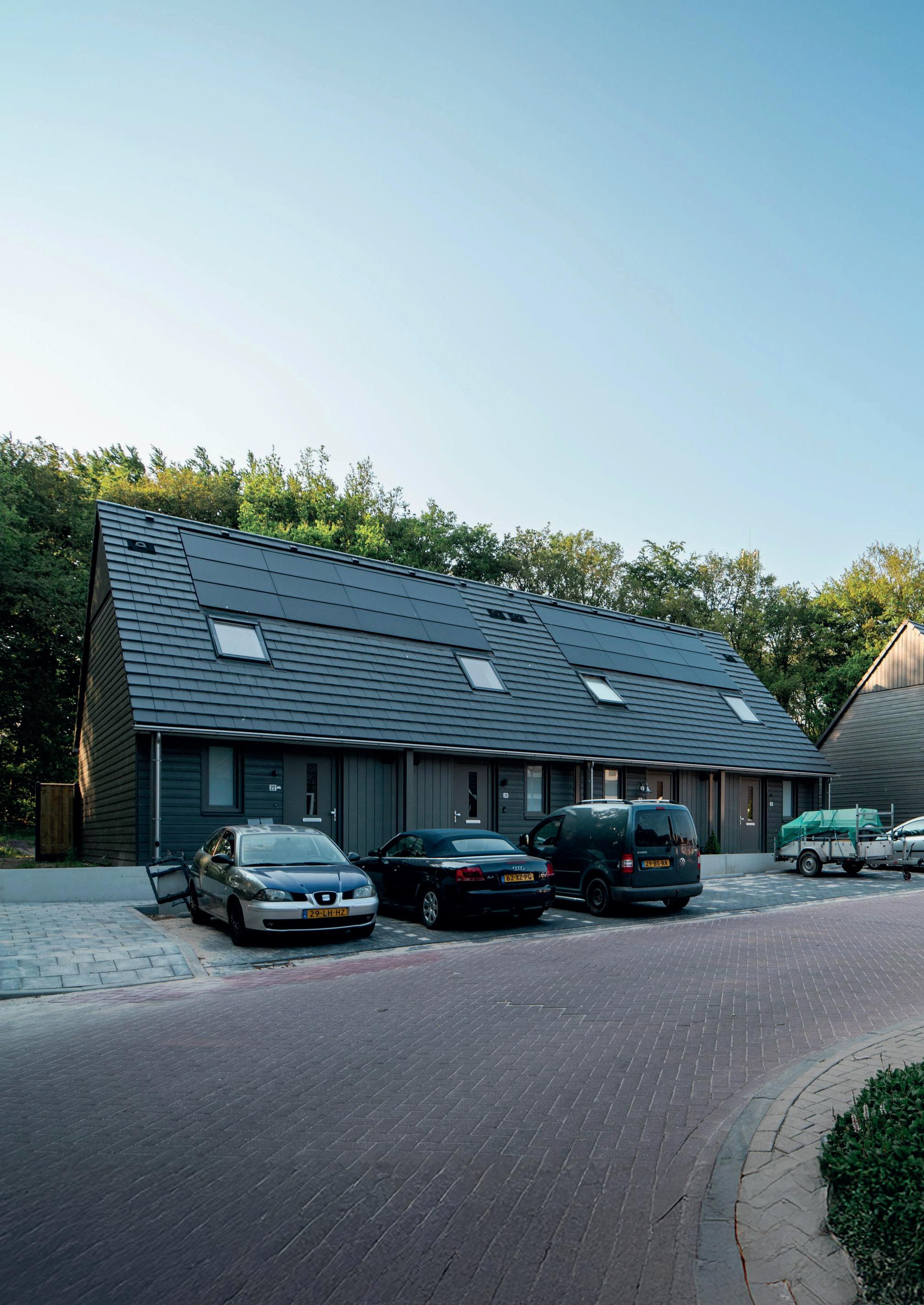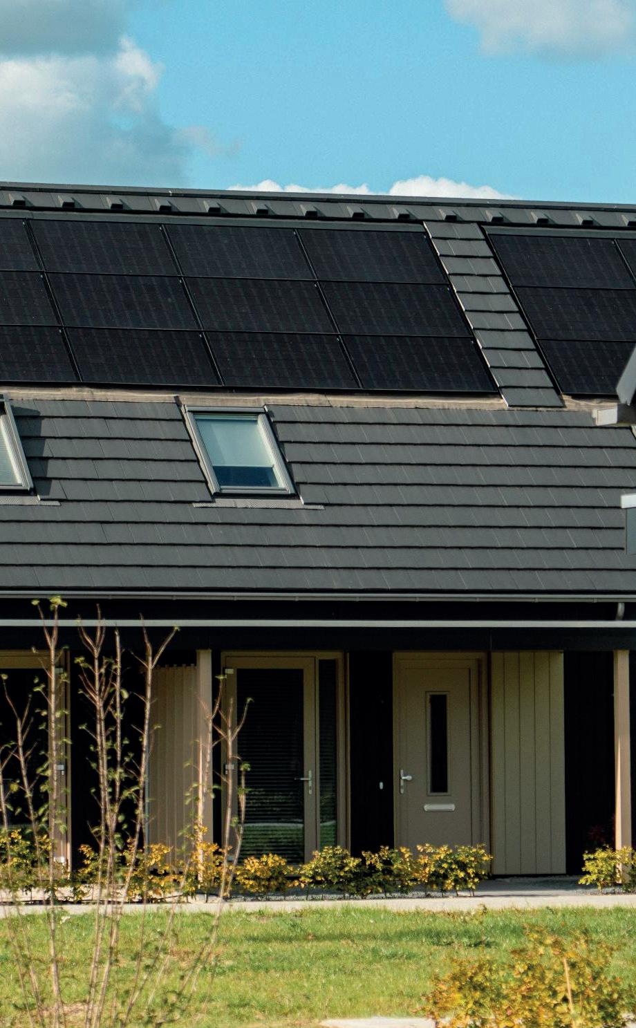 De woningen worden voorzien van een fraai ogend in het dak geïntegreerd zonnestroomsysteem met een vermogensgarantie van 30 jaar. Het systeem wordt uitgevoerd met glasglas zonnepanelen, die veel duurzamer zijn dan glas-folie panelen. Bij glas-glas panelen is zowel de boven- als de onderkant beschermd met een glasplaat. Hierdoor kunnen er geen vocht, zuurstof en andere schadelijke substanties en gassen doordringen die de cellen kunnen aantasten. Ook zal het paneel minder snel buigen wat het risico op scheuren en trekspanningen in de cellen wegneemt.
