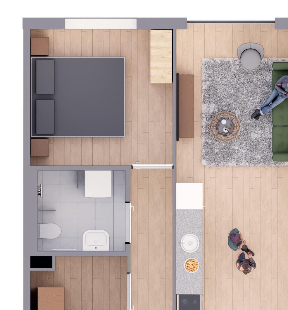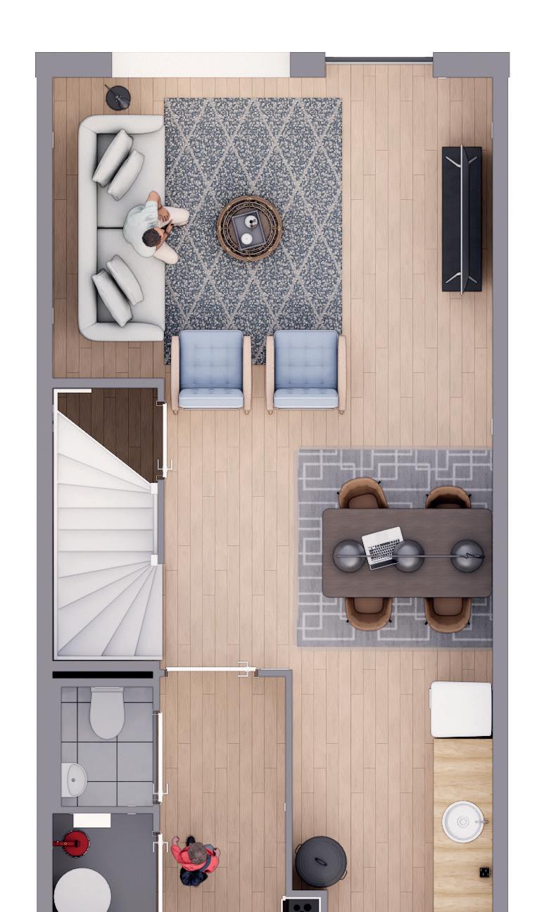 BVO van 129 m 2 voor een huishouding tot 4/5 personen. Met een zeer bescheiden footprint biedt deze woning alle gewenste woonfuncti es voor een doorsnee huishouden.