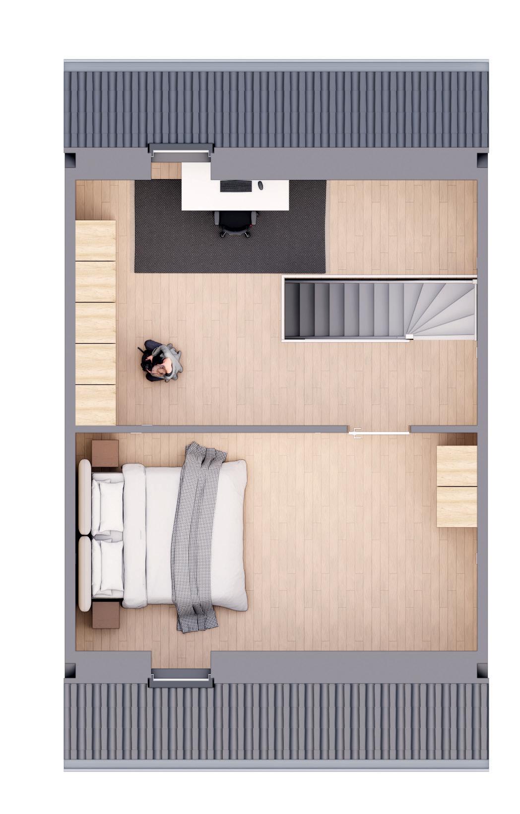 Syl is de bredere variant van Noa. Het is een compacte woning voor 1 tot 3 personen, en heeft een BVO van 87 m 2 .