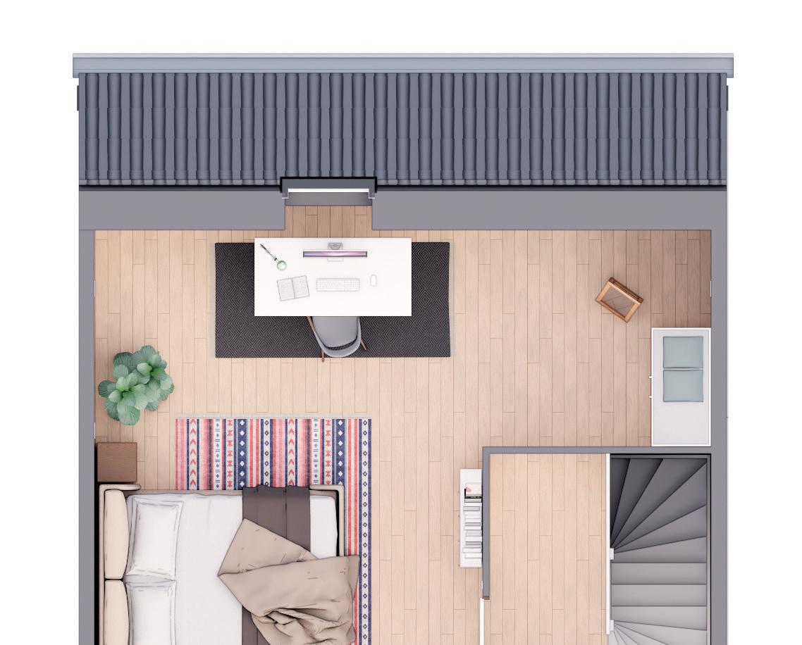 Woningtype B zijn grondgebonden woningen, bedoeld voor kleine huishoudens van 1 tot 3 personen. We noemen dit type ook wel tweelaags-met-plat-dak. Dit woningtype is in ontwikkeling.