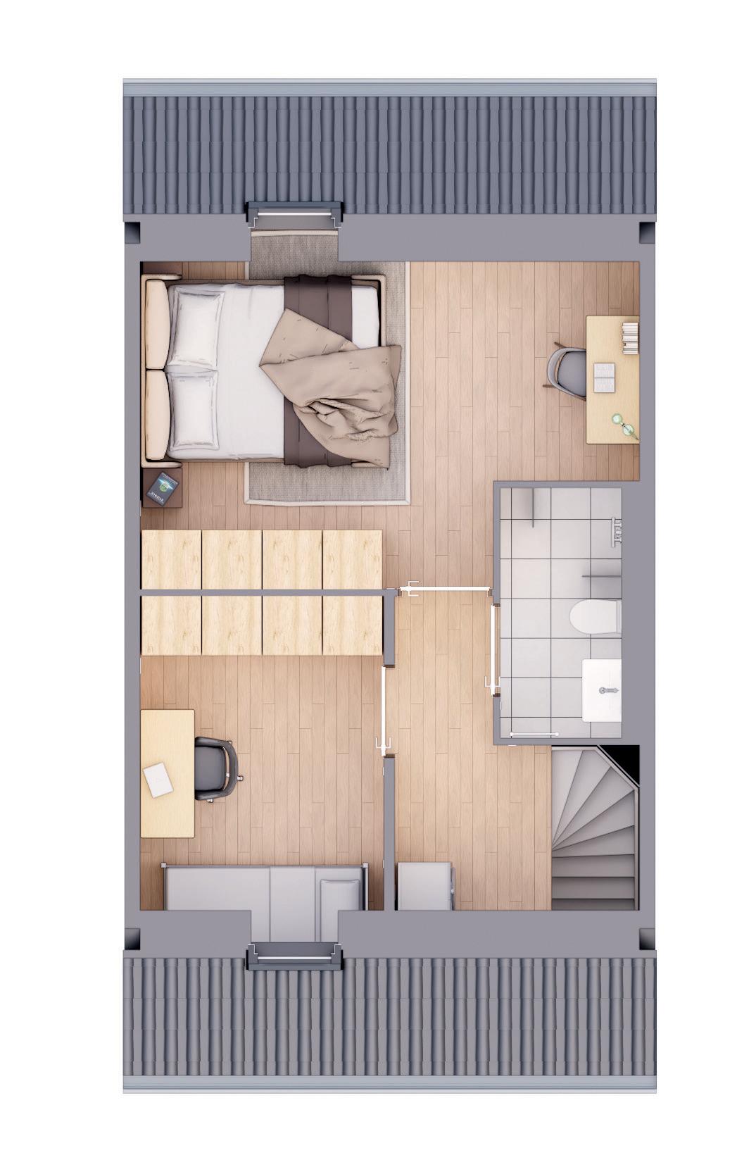 Woningtype E zijn compacte rug-aan-rug woningen, die zorgen voor veel woonruimte op een beperkte footprint. Dit woningtype is in ontwikkeling.