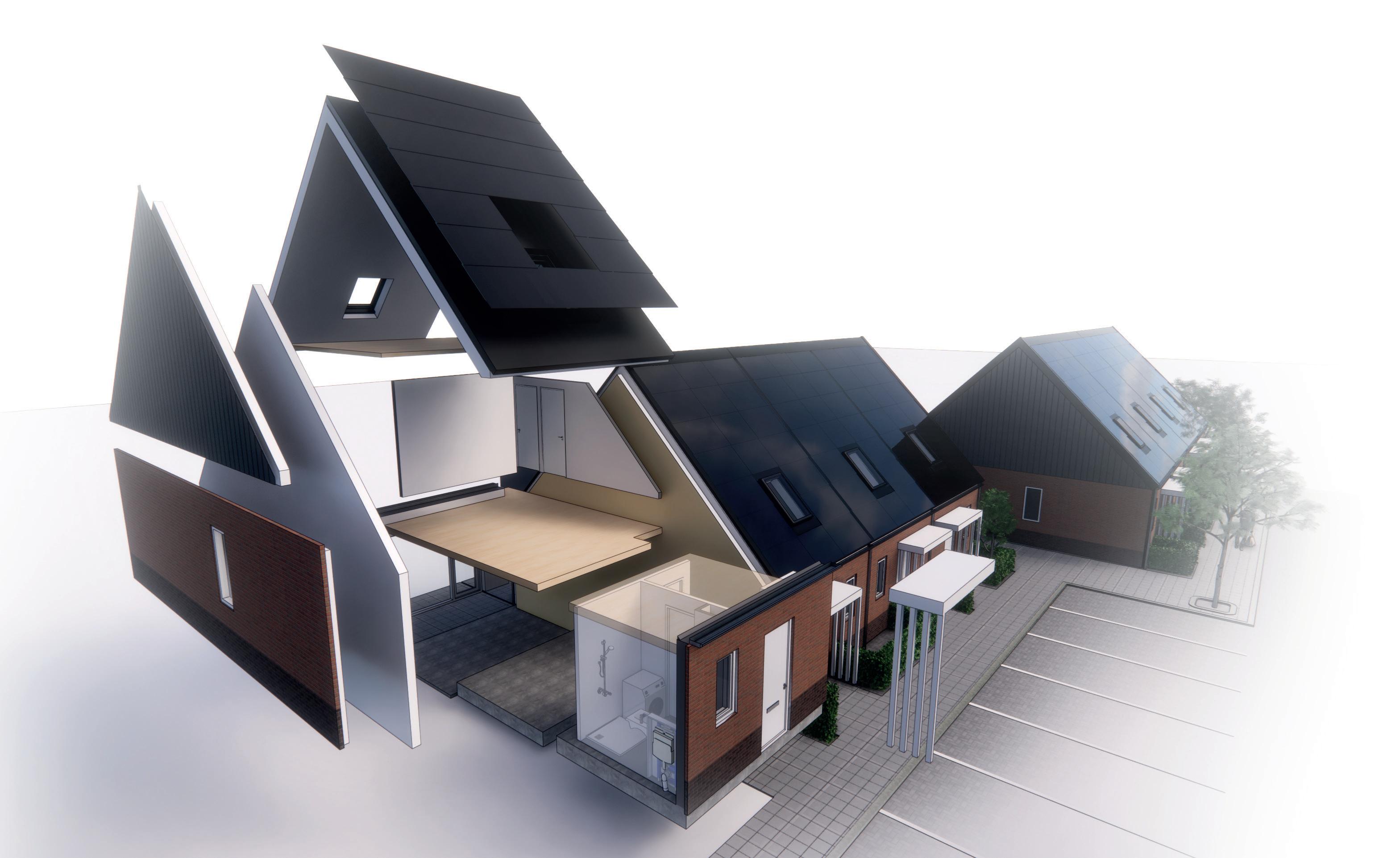 Karakter Optimum-woningen worden geproduceerd in energiepositieve productiefaciliteiten