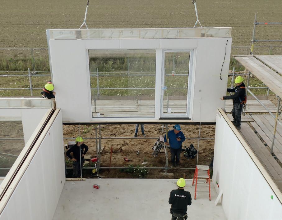 De woning wordt op afbouwniveau in de fabriek geproduceerd en gaat zogezegd “stekkerklaar” naar de bouwplaats. Een complete woning past op circa drie vrachtwagens. Geprefabriceerde woningen besparen tot wel 50% aan transportbewegingen ten opzichte van traditioneel gebouwde woningen.