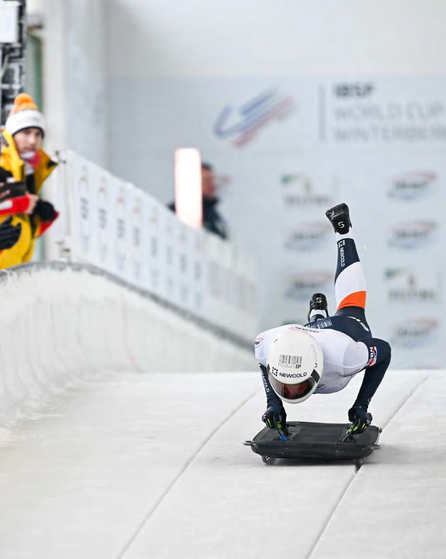 In de loop der jaren bracht Kimberley ons bedrijf de liefde voor deze bijzondere sport bij. Met workshops en lezingen, maar vooral door haar prestaties, tomeloze inzet en passie. We zaten de afgelopen jaren vol spanning voor het scherm om haar prestaties te volgen. De winst van races voor wereldbekers, haar Europees kampioenschap in 2022, de bronzen medaille tijdens de Olympische Spelen in Peking en - nog dit jaar - het behalen van de wereldtitel in Lake Placid; het waren prachtige momenten.