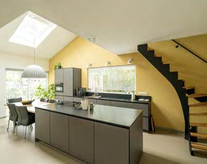 Kelderman toverde een geschakelde woning in Ede om tot een ware eyecatcher. De creatieve wensen van de opdrachtgever werden door Kelderman vertaald in een prachtig plan. Een van de wensen was om een vide te creëren, een leuke en nietalledaagse klus. De vakmensen verwijderden een deel van de verdiepingsvloer en creëerden een fraaie lichtstraat met behulp van Velux-dakramen. Daardoor krijgt de keuken, die het kloppend hart vormt van de benedenverdieping, natuurlijk licht. Verder werd de woning verduurzaamd en verrijkt met vloerverwarming en nieuwe kozijnen.