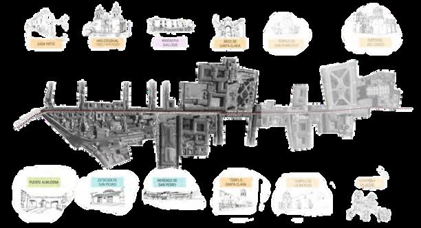 El terreno de la estación de San Pedro se muestra como una pos bi idad para poder abr rse a la soc edad como un espac o publico, e cual pueda contener equ pamiento de carácter cu tura y espac os permeab es que puedan ofrecer un lugar para e desarrol o de as act v dades trad c ona es representativas de centro h stórico