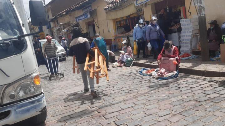 una comerc ante forma , vendedora de tubérculos man festó que actualmente no hay más puestos l bres en e mercado, o que eva a muchas personas a traba ar en a ca e e comerc o
