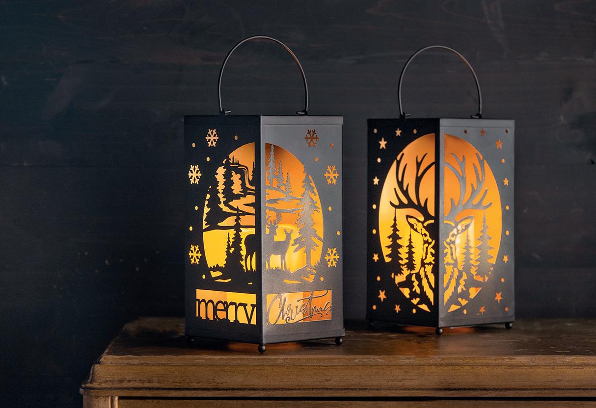 • Laternen mit filigranen Ausbrenner-Mustern und warm-weissen LED