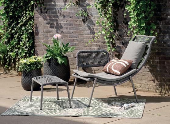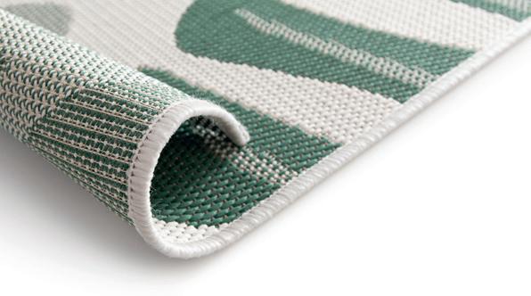 4 | Out- und Indoor-Teppich «Monstera» Diese qualitativ hochwertigen Teppiche für Terrasse, Balkon oder Garten sehen aus wie echte Teppiche, schaffen eine warme Atmosphäre und können das ganze Jahr draussen liegen bleiben. Alle Teppiche werden maschinell gewoben und sind sehr strapazierfähig. Das Kunststoffgarn hat die Haptik von Wolle, wobei es nicht schimmeln kann.