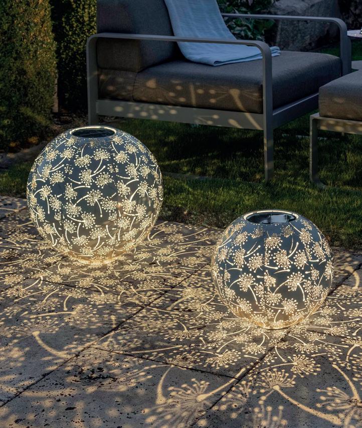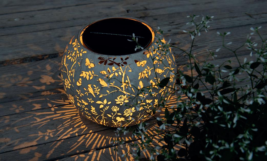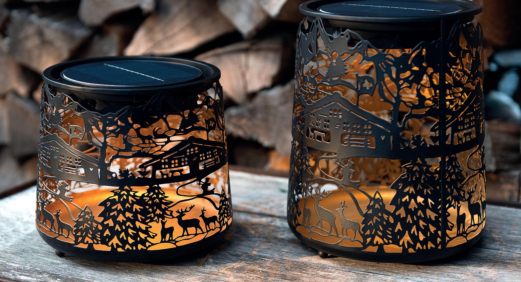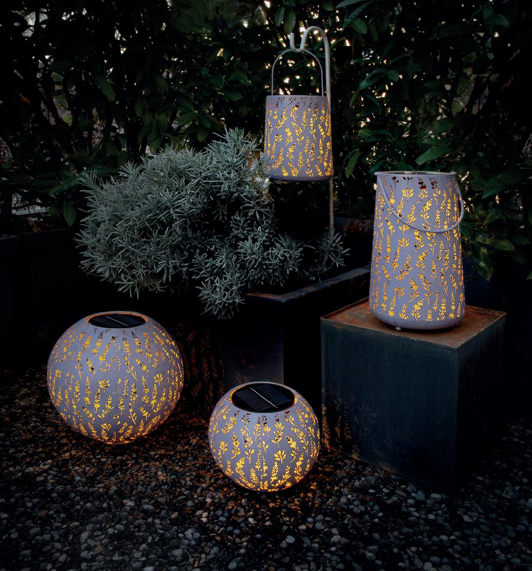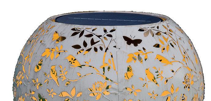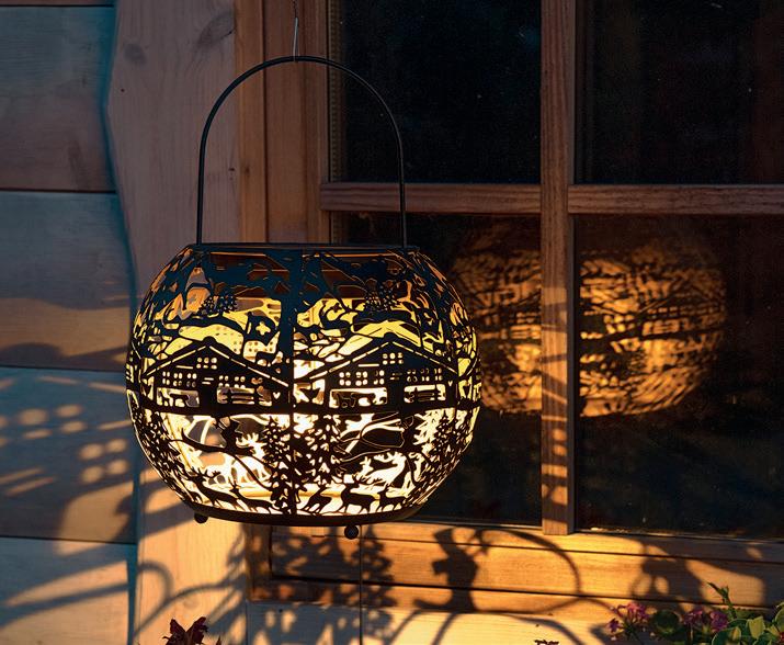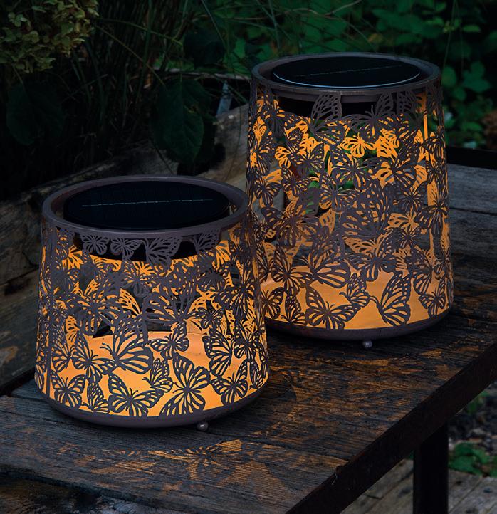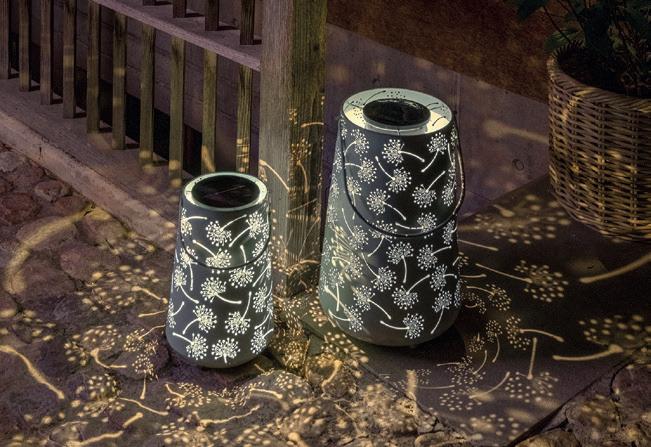 3–6 | Tagsüber dienen sie als schöne Dekoration mit antiker Optik und Ornamenten. Abends bieten diese Laternen einzeln oder als Gruppe ein besonderes Lichterlebnis mit einem wunderschönen Schattenspiel. Schalten sich bei Dämmerung für ca. 6 Stunden bei vollem Akku automatisch ein. Alle Solarlampen sind mit dem DUO-Solarpanel ausgestattet welche via USB-Kabel aufladbar sind, wenn die Sonnenenergie nicht ausreichen sollte. Die Leuchtfarbe kann zwischen warm-weiss und sunny-warm individuell eingestellt werden.