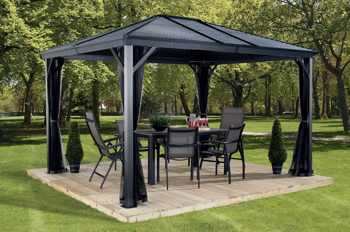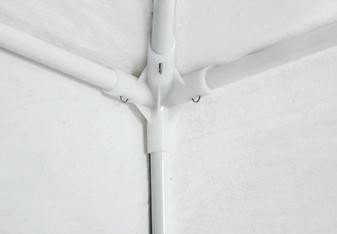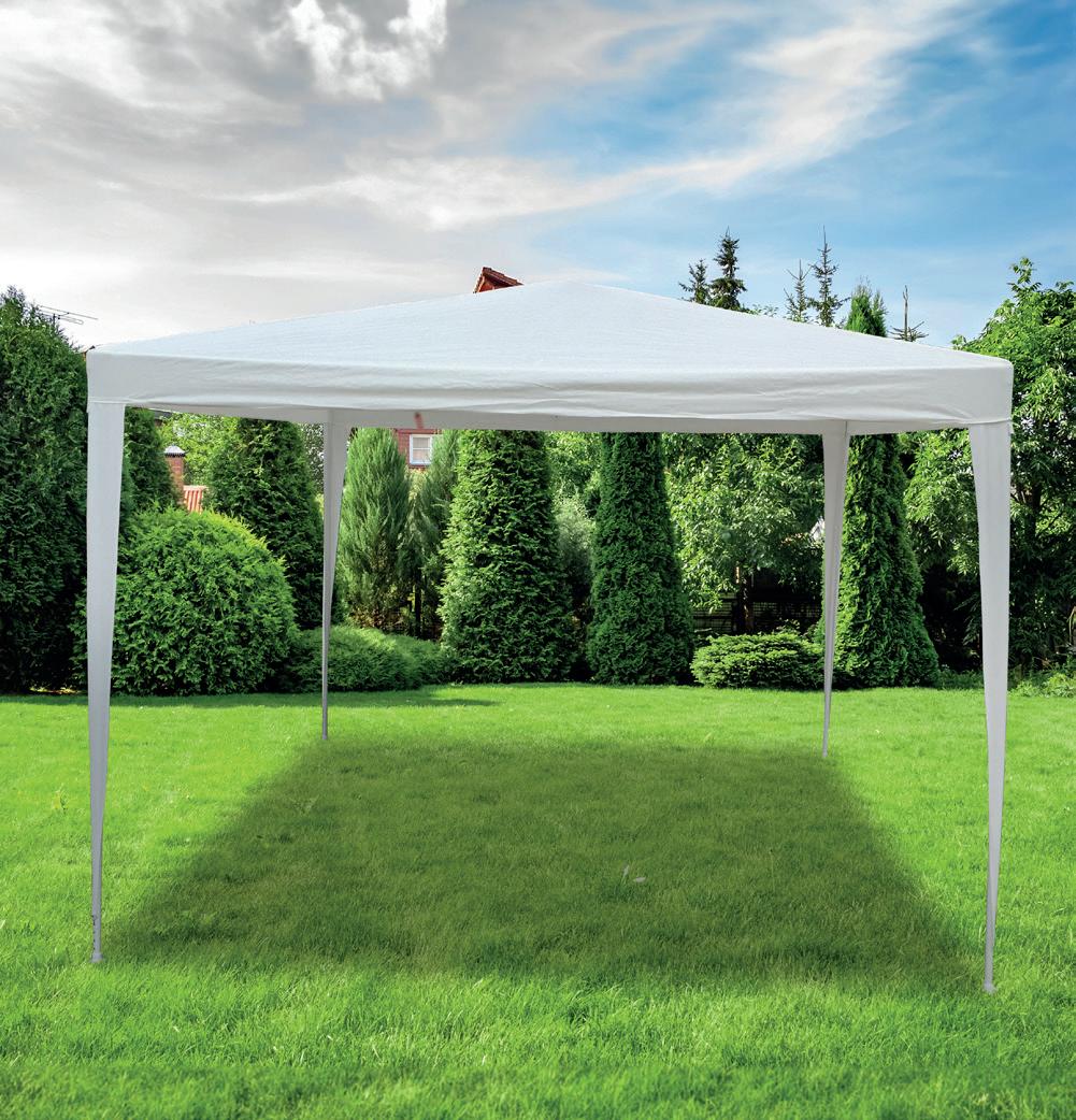 Einfach und schnell aufgebauter Pavillon für Ihre nächste Gartenparty. Mit einer Grösse von 3×3 m und dem wasserabweisenden Dach aus PE bietet dieser Pavillon genügend Schutz vor Sonne, kurzweiligem Regen und leichtem Wind. Das zusammensteckbare Gestänge aus Stahlrohr ist weiss pulverbeschichtet. Gewicht: 6,0 kg, Masse aufgestellt (L×B×H): 3×3×2,45 m