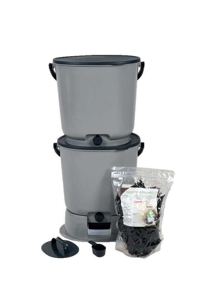 Der Indoor-Komposter – die ideale Lösung für Ihre Küchenabfälle das ganze Jahr über. Der luftdichte Bokashi-Behälter ermöglicht die effiziente Vergärung von Bioabfällen und ist die Grundlage für hochwertigen Kompost. Das Endprodukt dient als ausgezeichneter Blumen- und Gemüsedünger. Im Lieferumfang enthalten: 2× 15,3 Liter Behälter und 1× 1 kg Terra Preta Bokashi
