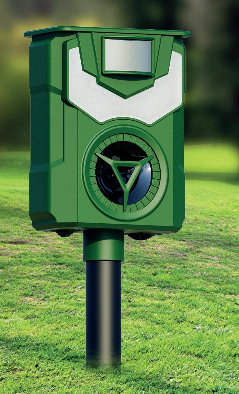Die neue Art, Vögel fernzuhalten. Kein Gewöhnungseffekt bei den Vögel, dank der Zwei-Band-Ultraschall und automatischem Frequenzwechsels. Die Abwehr kann hängend in Bäumen oder Sträuchern oder mit dem mitgelieferten Erdspiess überall im Garten eingesetzt werden. Das Gerät in ca. 4 Stunden mit dem mitgeliefertem Ladegerät aufladbar, falls die Sonneneinstrahlung nicht ausreichen sollte. Masse exkl. Erdspiess (L×B×H): 16×16×16,5 cm