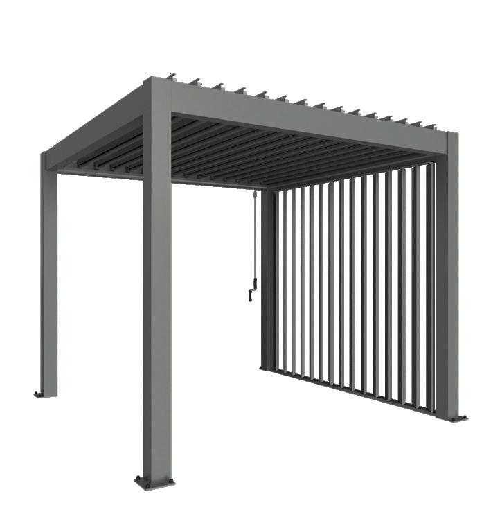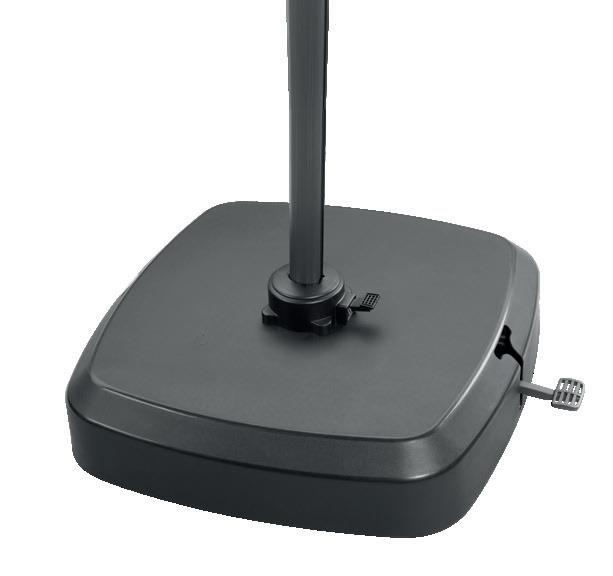 2 | Freiarm-Sonnenschirm «Rhodos Eco Twist», 2,7×2,7 m, inkl. Schutzhülle Der Sonnenschirm verfügt über eine Bespannung, die zu 100% aus Polyester mit ca. 180 g/m² besteht. Sie ist verrottungsfest, wasserabweisend imprägniert und bietet einen UV-Schutz von 50+. Das Alu/StahlGestell ist anthrazitgrau pulverbeschichtet. Der Sonnenschirm hat eine ein- stellbare Dachneigung bis 50°, eine beidseitige Kippfunktion bis 45° und ist per Drehgelenk mit dem Fusspedal um 360° drehbar. Masse Schirmfläche (L×B): 2,7×2,7 m