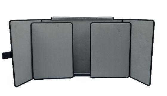 Eleganter Wärmespender aus pulverbeschichtetem Stahl, ideal für Innen- und Aussenbereiche. Masse (L×B×H): 45×45×10 cm, Heizbereich: ca. 10 m², inkl. LED Lampe und Fernbedienung
