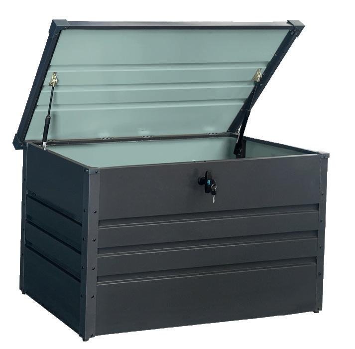 Metallkissenbox aus Stahl – abschliessbar, wetterfest und stabil.