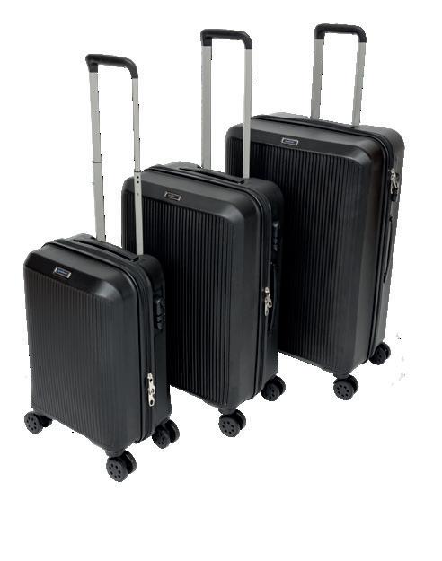 Mit 360°-Rollen, stabilem Reissverschluss und 3-Zah len-Schloss. Grösse S, Masse (L×B×H): 33×22×54 cm, Grösse M, Masse (L×B×H): 44× 27×65 cm, Grösse L, Masse (L×B×H): 50×28×75 cm