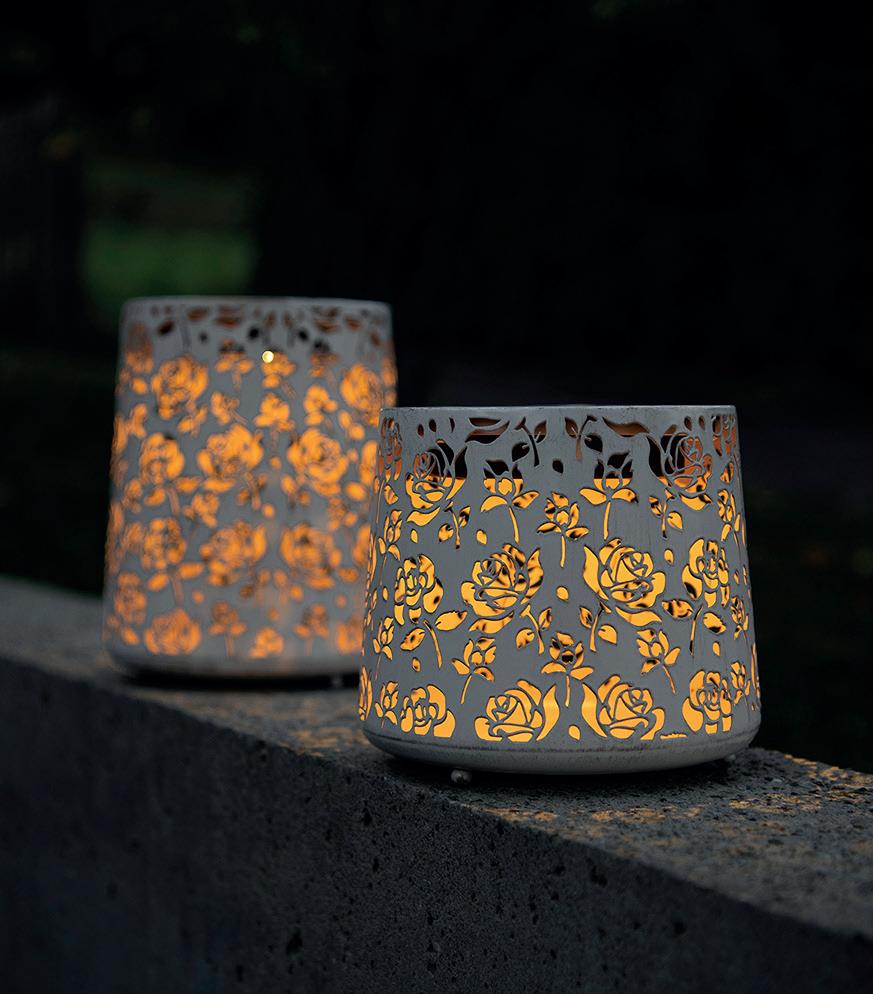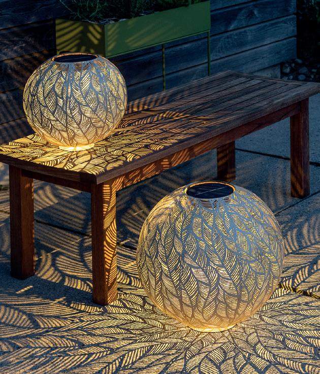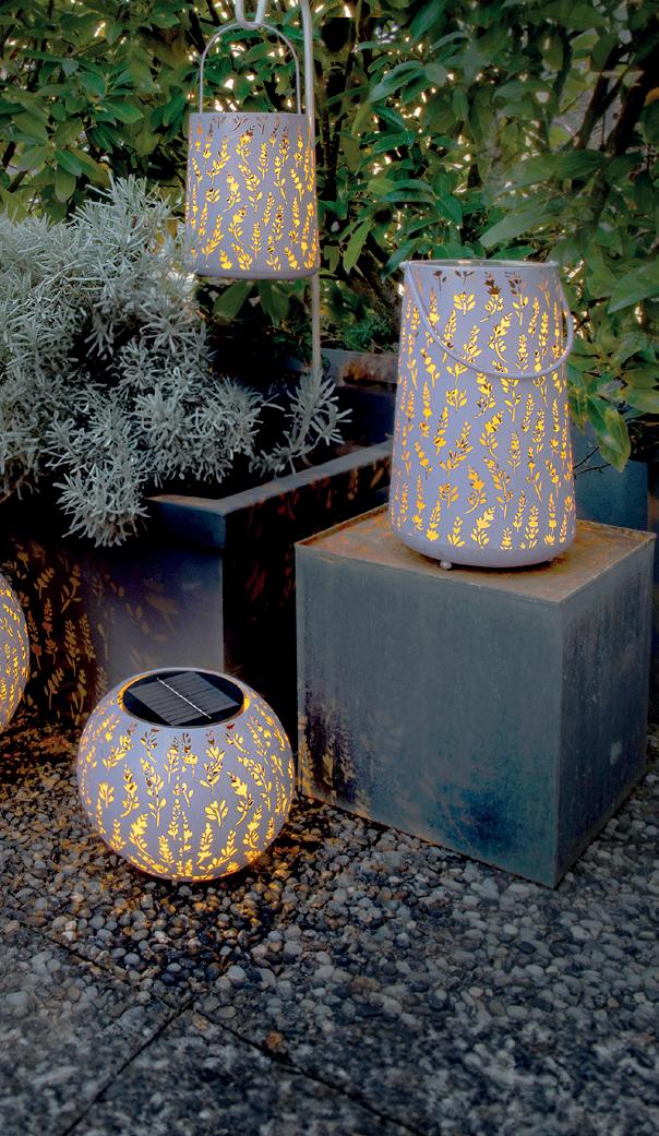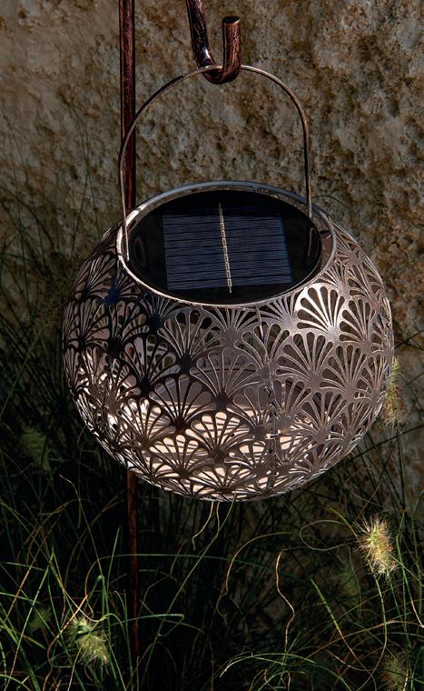 1–17 | Abends zaubern die Laternen ein faszinierendes Schattenspiel – einzeln oder in Gruppen. Mit DUO-Solarpanel, USB-Ladefunktion und automatischer Einschaltung bei Dämmerung (bis 6 Std. Leuchtdauer). Leuchtfarbe: warm-weiss oder sunny-warm.