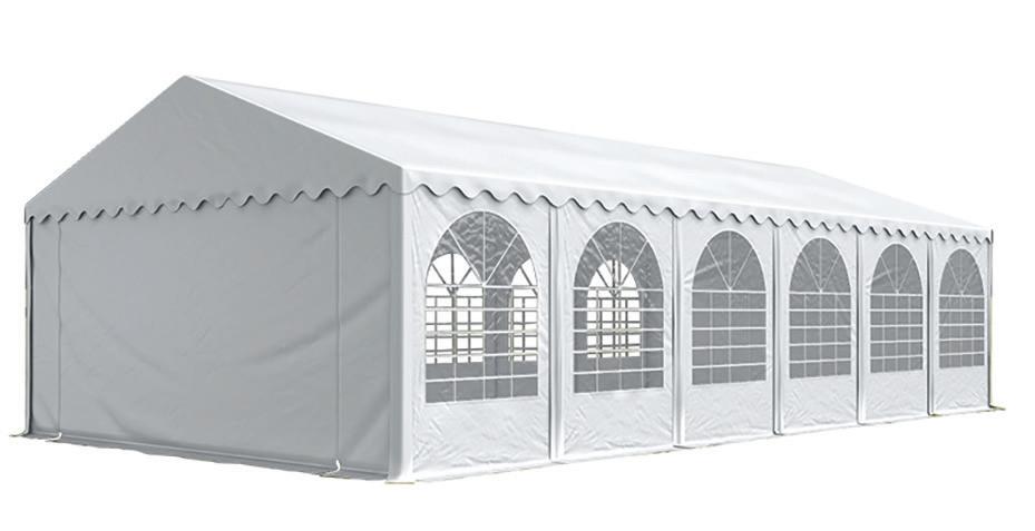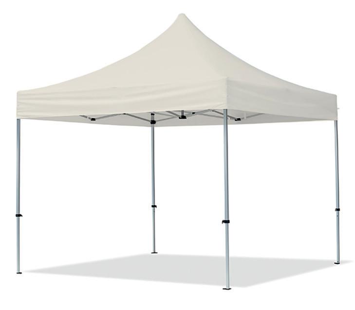 Schnell aufgebauter Pavillon, 3×3 m, mit wasserabweisendem PE-Dach – idealer Schutz bei Sonne und leichtem Regen. Weiss pulverbeschichtetes Stahlgestänge, Gewicht: 6 kg, Masse (L×B×H): 3×3×2,45 m