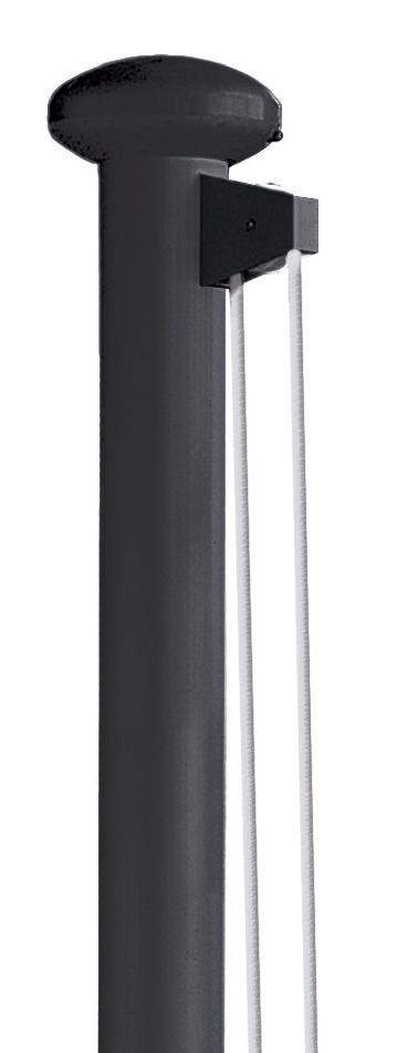 1 | Aluminium-Fahnenmast, de Luxe-Set «Konisch», inkl. Schweizerfahne Superflag®, 150×150 cm Elegant und stabil erhebt sich der konisch geformte Fahnenmast – für optimale Wirkung Ihrer Fahne. Durch die Verjüngung des Mastkopfs wird der Winddruck reduziert, was zusätzliche Stabilität verleiht. Inkl. Abdeckkappe aus Alu-Guss, Seilverbindung, Fahnenhalter, Spannvorrichtung, Schweizerfahne Superflag® (150×150 cm) und Fahnenseil, exkl. Wandhalter oder Bodenhülse.